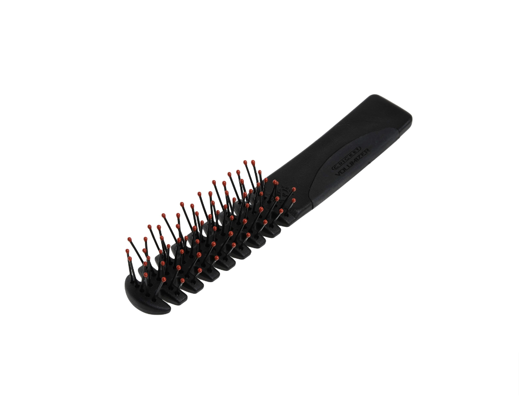 This brush is designed with static-free properties that effectively eliminate flyaway hair, and its non-snag bristles feature reinforced “stay-put” ball tips for added durability. The special crisscross bristle pattern lifts and adds volume to the hair, providing a fuller appearance. The grip of the brush is ergonomically designed for maximum control and comfort during styling. Additionally, the brush is vented to allow for quick drying times, making it a versatile tool for achieving voluminous and styled hair looks efficiently.