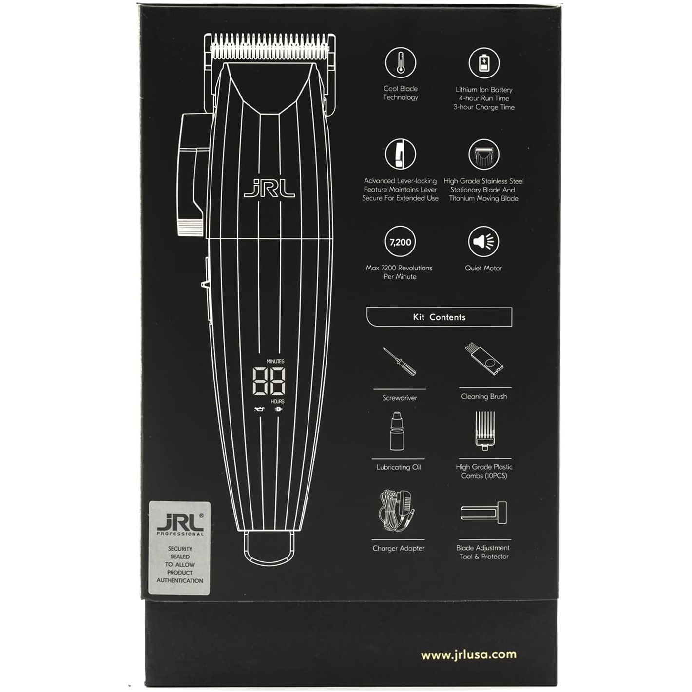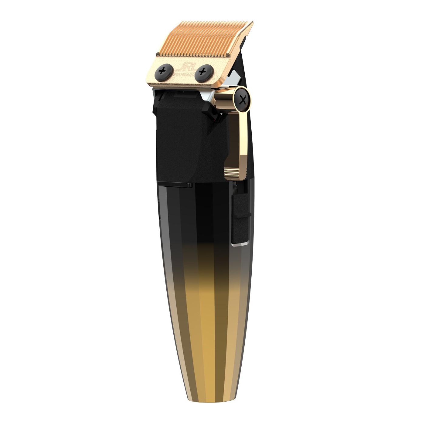 Experience the precision and power of the JRL FreshFade 2020C Clipper Gold. With a lithium-ion battery that provides a 4-hour run time and a 3-hour charger time, this clipper is perfect for professional barbers. The advanced lever-locker feature ensures a secure lever position for extended use, while the high-grade stainless steel stationary blade and titanium moving blade deliver exceptional cutting performance. With a max speed of 7,200 RPMs and a quiet motor, this clipper offers both speed and comfort. Plus, it comes with a screwdriver for easy maintenance.