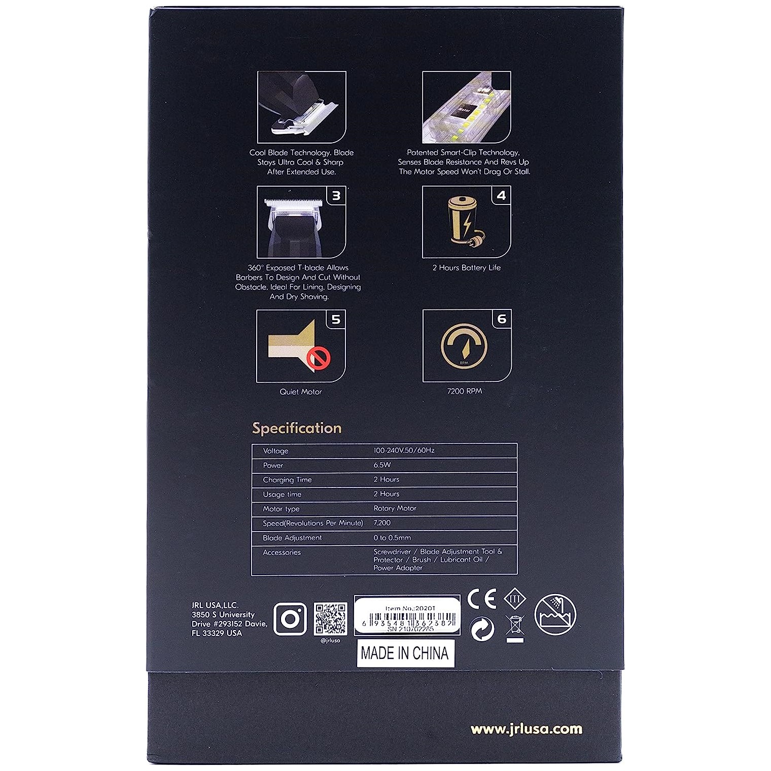 Experience the cutting-edge performance of the JRL FreshFade 2020T Trimmer Silver. Equipped with a 360° exposed ultra sharp T-Blade and patented smart-clip technology, this trimmer offers superior precision and efficiency. With its cool blade technology, the blade stays cool and sharp even after extended use. Plus, the 2-hour battery life and 7,200 RPMs ensure a powerful and uninterrupted trimming experience.