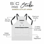 Professional Barber Apron – Durable, Adjustable, and Functional Built for daily use in the shop, this professional-grade apron is made from heavyweight, 100% polyester fabric that’s water-repellent and resistant to dyes and chemical splashes. Designed to fit most body types, it features an adjustable 29″ shoulder strap and 55.5″ waist strap for a secure, comfortable…
