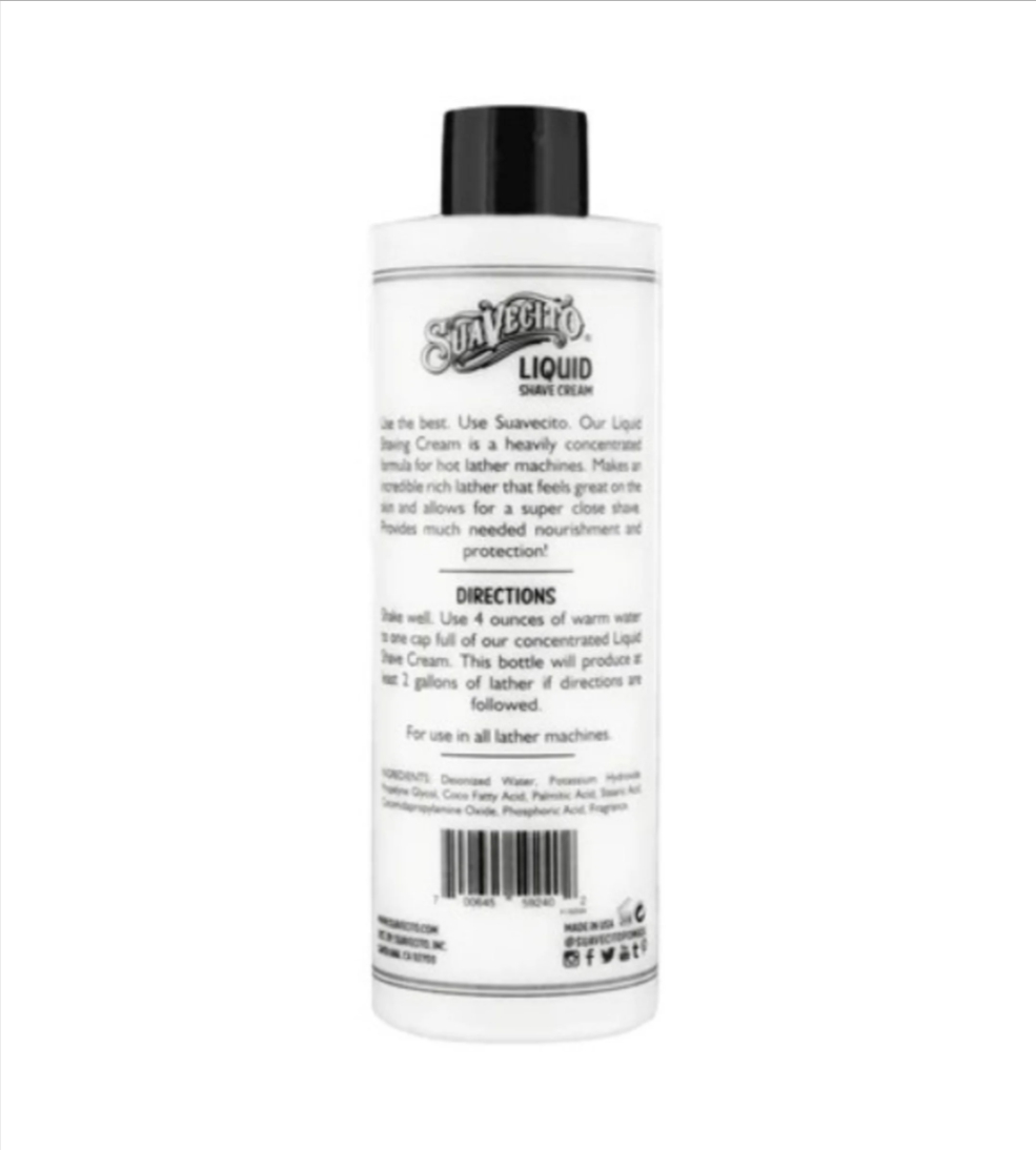 Suavecito Liquid Shave Cream is a highly concentrated formula designed specifically for hot lather machines. Just a small amount produces a luxurious lather, ensuring a close shave and a delightful sensation on the skin. With a timeless barbershop fragrance, this cream nourishes and protects the skin, offering the experience of a professional shave.